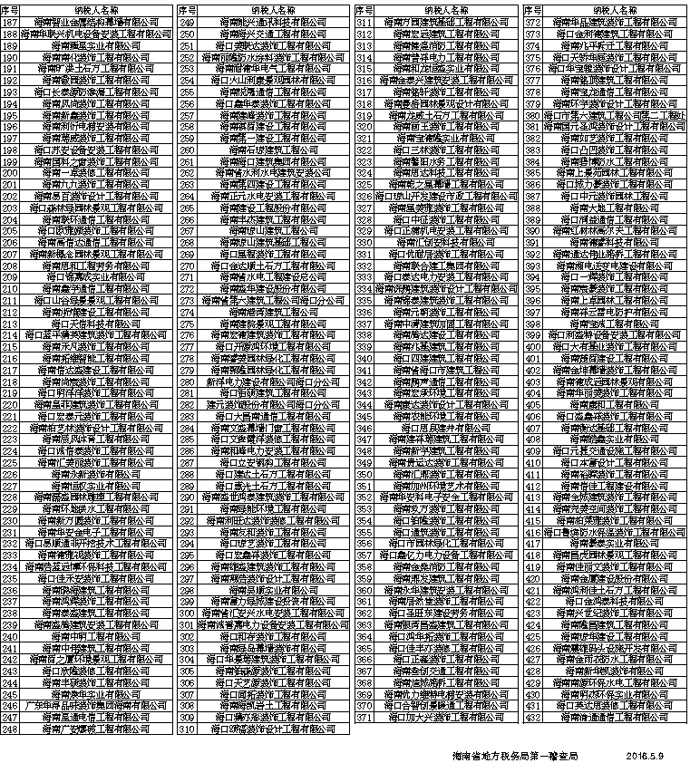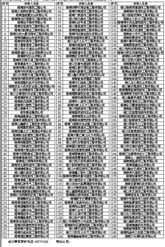 根据《海南省地方税务局关于组织部分企业开展企业所得税风险自查的通知》(琼地税函〔2016〕349号)部署和要求,我局定于2016年5月13日上午9:00(8:50进场完毕)召开部分企业企业所得税风险自查动员大会,参加会议人员为企业法人代表及财务负责人,会议详细地址:海口市滨海大道民声东路2号海口市地方税务局二楼大会议室,参加会议的企业名单如下: