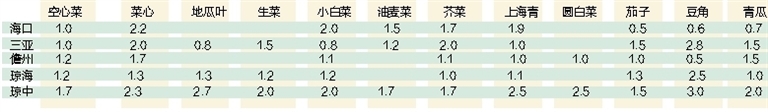 海南部分市县蔬菜田头收购价信息