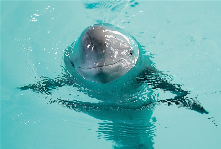 长江江豚是一种古老的水生哺乳动物,在地球生活已有2500万年历史,被称为长江生态的“活化石”,仅分布于长江中下游干流及与之相连的鄱阳湖、洞庭湖两个大型通江湖泊。据科考研究,长江流域江豚数量已不足千头,比国宝大熊猫还要少。 新华社记者 程敏 摄