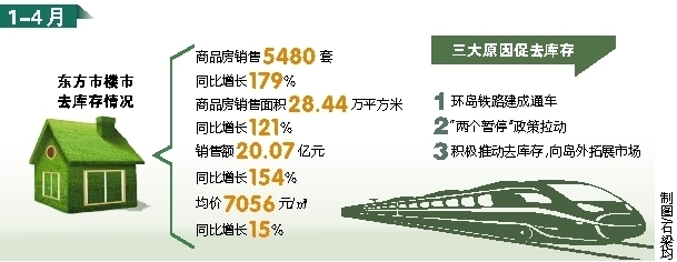 林鹏介绍,东方房地产业逆势上扬,主要有三个方面的原因:一是随着环岛铁路建成通车,东方的区位优势越发明显,对购房者的吸引力增大;二是“两个暂停”政策的刺激作用;三是东方市积极推动去库存,向岛外拓展市场,取得了一定成效。