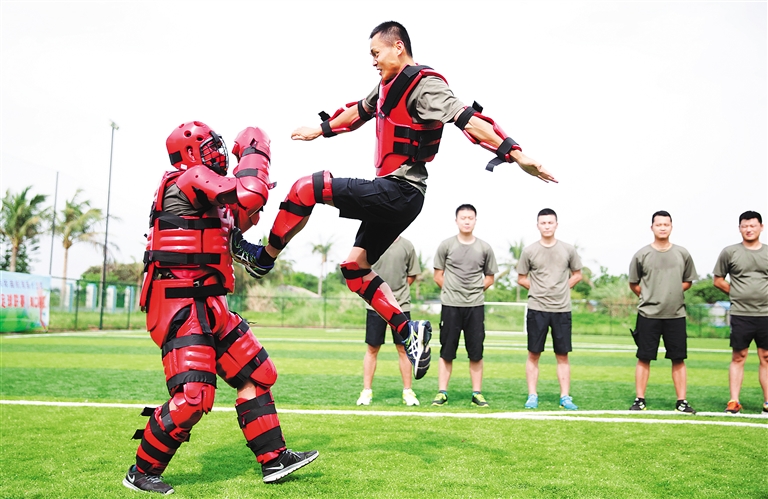 5月10日,空保人员在南航海口美兰基地进行体能训练。当天,南航海南分公司举办“公众开放日”活动,邀请媒体从业者和公众代表一起走进南航海口美兰基地,了解南航在海南的运行指挥系统,观摩空保人员的体能训练,品鉴南航空中酒文化、茶文化。同时,媒体从业者和公众代表还了解到有关雷雨季航班大面积延误、空中紧急医疗救援知识。本报记者 张茂 摄