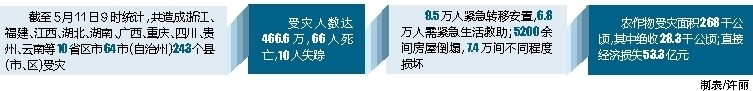 新华社北京5月11日电 记者11日从民政部获悉,5月4日以来,江南、华南及西南地区东部等地接连出现强降雨过程,部分地区遭受了强对流、暴雨洪涝及引发的山洪、泥石流等灾害。