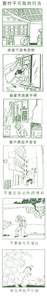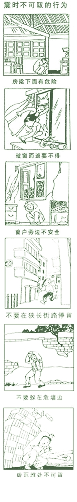 一要因地制宜,不要一定之规 震时,每个人所处的状况千差万别,避震方式不可能千篇一律。例如,是跑出室外还是在室内避震,就要看客观条件:住平房还是楼房,地震发生在白天还是晚上,房子是不是坚固,室内有没有避震空间,室外是否安全等等。