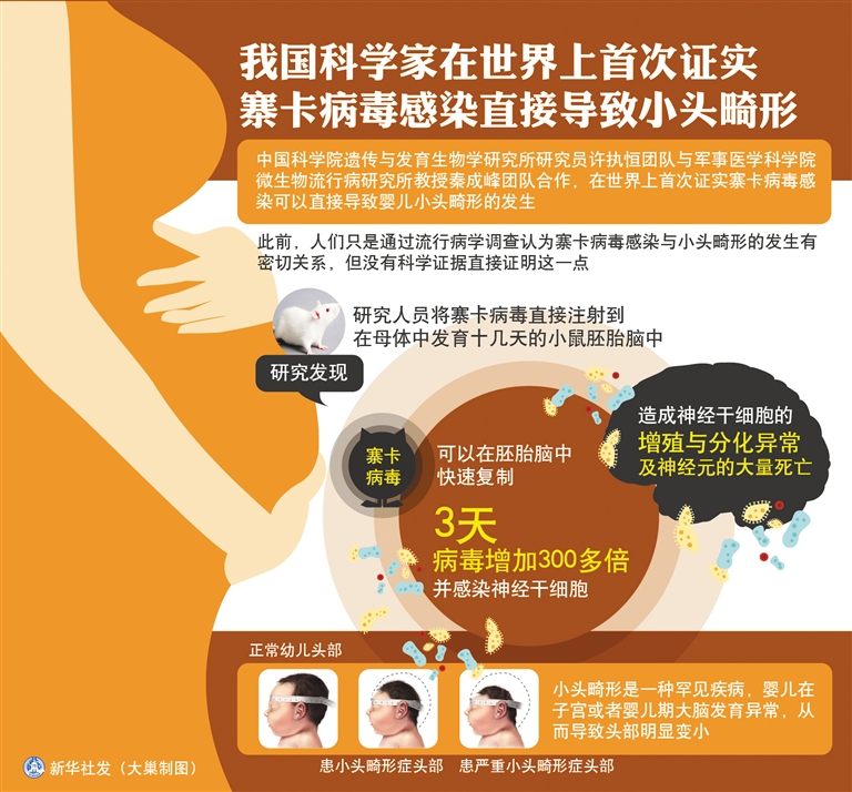 我国科学家在世界上首次证实 寨卡病毒感染直接导致小头畸形