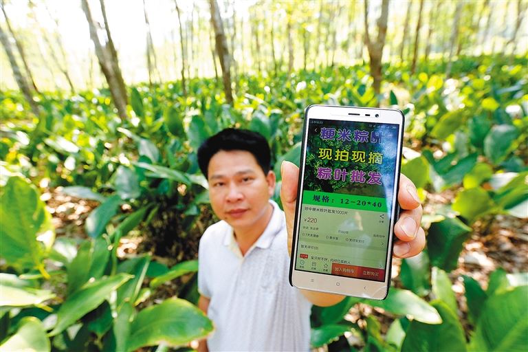 近日,在琼中黎族苗族自治县黎母山镇南利村黎母粽叶合作社,社员们正在网络展示自家种植的粽叶。据该合作社负责人杨胜介绍,今年粽叶很畅销,尤其是去年底开展网上销售业务以后,销量一路大增,每月的销售量增加近五成。很多客户通过网上视频和图片直播观看粽叶的长势后,就立即在网上下了单,既方便了客户,又节省了销售环节上的成本费用。本报记者 陈元才 通讯员 朱德权 实习生 陈若龙 摄