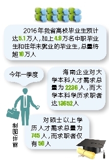 据了解,2016年我省高校毕业生预计达5.1万人,比去年增加2000人,加上4.9万名中职毕业生和往年未就业的毕业生,总量将超10万人。而与之相对应的,海南企业吸纳相关专业毕业生就业的能力将有所下降,这就导致大学生在海南求职的竞争更加激烈。