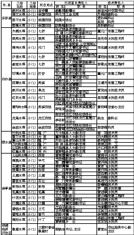 海南省小(1)型水库防汛行政责任人和技术责任人名单