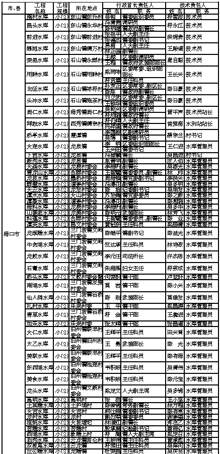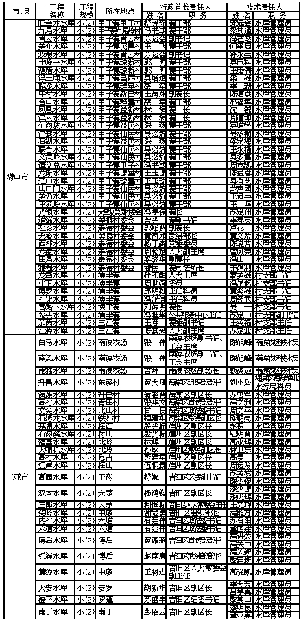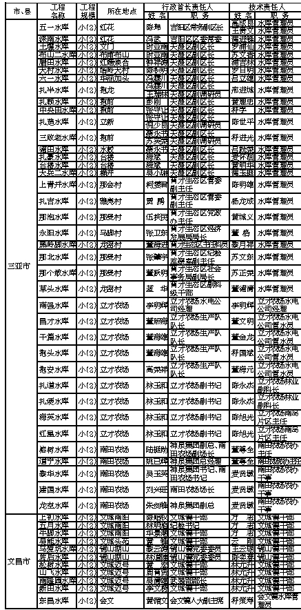 海南省小(2)型以上水库防汛行政责任人和技术责任人名单