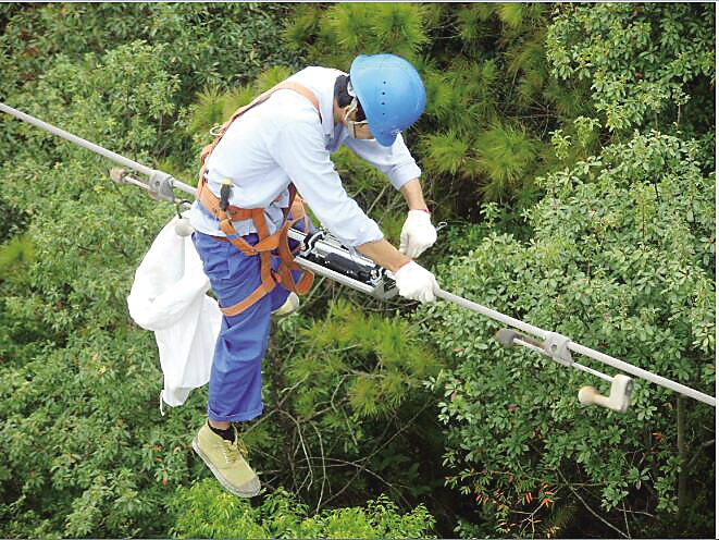 陈钦柱回忆,当时四五个工作人员开着皮卡车靠在最近的一条进山的路旁边,背上绝缘梯、工具包、绳子等作业工具,二话不说便开始爬山路,向着杆塔进发。“四五年前的路,路况也不好,车子十分颠簸,要赶在天黑前完成一天的工作量,谁也不敢耽搁,吃睡都在山上。”陈钦柱说再赶、再累也不能贪黑工作,要严格保障安全问题。