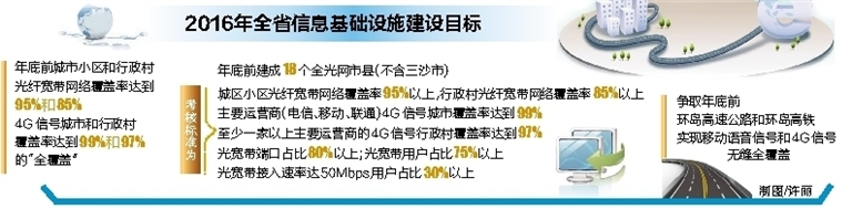 此外,推进环岛高铁沿线移动语音信号和4G信号的覆盖是今年的重点工作任务。相关部门正加快推进环岛高铁沿线信息基础设施建设,争取2016年年底前,环岛高速公路和环岛高铁实现移动语音信号和4G信号无缝全覆盖。