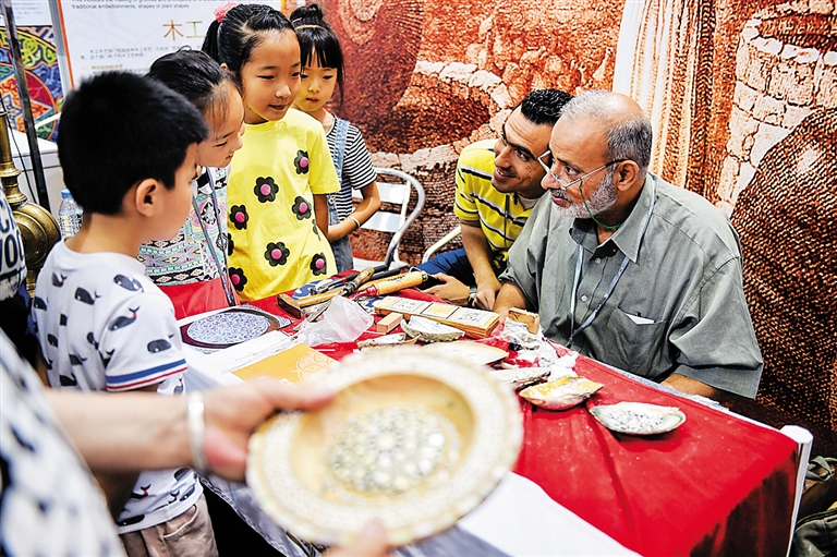 5月15日,小观众在一带一路馆与埃及手工艺人交流。 5月16日,第十二届中国(深圳)国际文化产业博览交易会落下帷幕。本届文博会实现实质性成交金额2032亿元,比上届增长23.42%。其中,出口交易金额近177亿元,同比增长7.35%。
