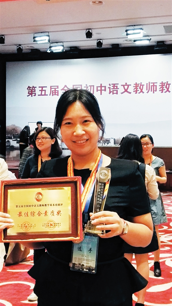 5月12日,在现场赛课教学竞赛中,徐婧老师以其扎实的教学基本功、巧妙的教学设计、精彩的教学展示赢得了一等奖,并在随后的个人单项评比中以其绝对的优势夺得个人单项奖最高奖“最佳综合素质奖”。