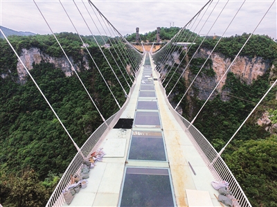 张家界大峡谷玻璃桥 完成桥面玻璃安装