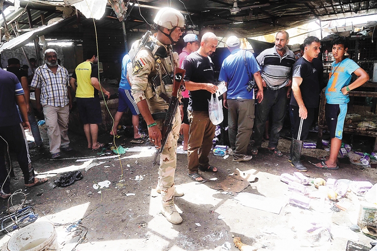 5月17日,在伊拉克巴格达,一名士兵在爆炸现场警戒。 伊拉克官员17日说,首都巴格达当天多个地区发生爆炸袭击,已造成至少31人死亡、82人受伤。 新华社发