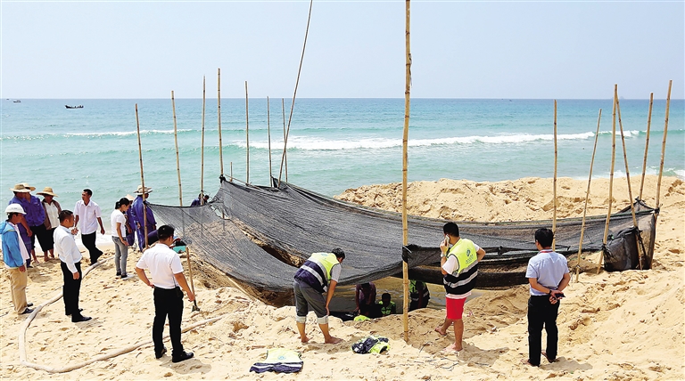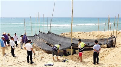 今天下午,陵水海洋渔业局召集专家拟定进一步救护方案,并调来渔船转运,但是由于海况复杂且难度加大,截至今晚8时30分记者发稿时,搁浅鲸鱼仍未被成功转运,但身体情况已经趋于稳定。