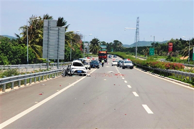 据了解,张某当天驾驶一半挂牵引车沿环岛高速从三亚往乐东方向行驶,当行至316公里路段(乐东县境内)时与陈某财驾驶的小轿车追尾碰撞,导致驾驶员陈某财与两名乘车人当场死亡,另一乘车人受重伤。
