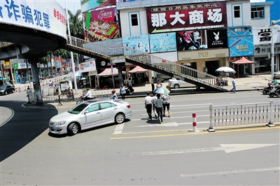 有市民建议,有关部门能否采取隔断措施,让行人无法进入马路,而改走天桥过街。