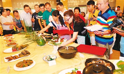 今天下午,“舌尖上的屯昌”名吃名厨评选活动进行。参赛选手巧手匠心,制作了近30道风味独特、色香俱全的美味佳肴,吸引众多“吃货”围观、拍照、品尝,获得诸多好评。