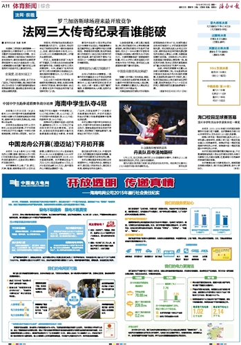 海南日报 体育新闻综合 011 2016-05-231 2016年05月23日 星期一