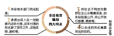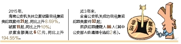 省公安厅经侦总队相关负责人介绍,近年来非法集资手段越来越多,令普通投资者防不胜防。不法分子往往成立合法公司,办理完备的手续,采取虚假宣传包装,选择一些热点的、国家政策扶持的投资项目和行业,虚构理财项目、许以高息等进行欺骗、诱惑,达到其非法集资的目的。(本报海口5月22日讯)