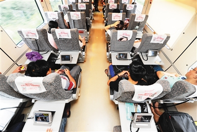 当天,1000多台平板电脑陆续登上海南环岛高铁10组动车的一等座车厢,看资讯、读海报、看电影……对于这个乘车新“伴侣”,旅客们赞不绝口。