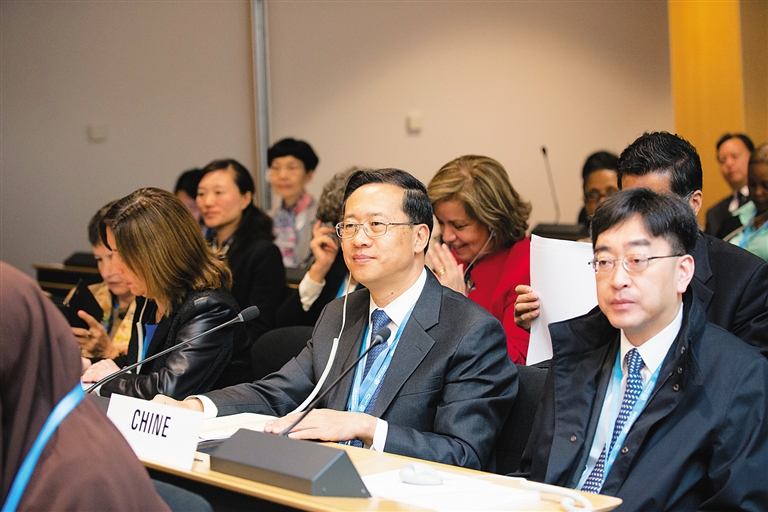 5月23日,第69届世界卫生大会在日内瓦万国宫开幕。在瑞士日内瓦万国宫,中国代表出席第69届世界卫生大会。新华社发