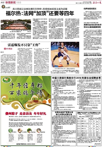 海南日报 体育新闻综合 012 2016-05-241 2016年05月24日 星期二