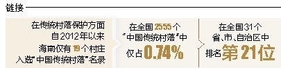 未来10年,海南传统村落将面临新一轮城镇化、城乡发展一体化、乡村旅游开发的多重挑战,如不及时加强保护,分散在各市县各具特色的传统村落及乡土建筑,将随时面临着被拆、迁、整、改、并等种种危险。因此,在新型城镇化过程中,各级政府必须切实加强传统村落的保护、非物质文化遗产传承和自然景观、生态资源保护。这是迫在眉睫、意蕴深远的民生工程。(作者单位:中共海南省委党校)