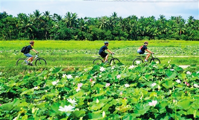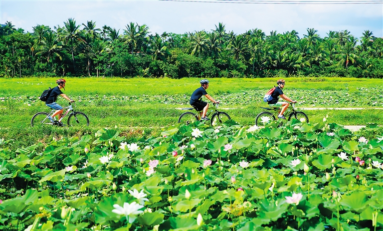 此时的江南,业已步入采莲的季节,比起水乡的接天莲叶,龙寿洋的荷花池多了一分田园的精致。别具一格的热带田野风情与小家碧玉的清秀莲花相融,呈现出的是不同于江南的秀丽景色,也展现给世人一幅别样美景。