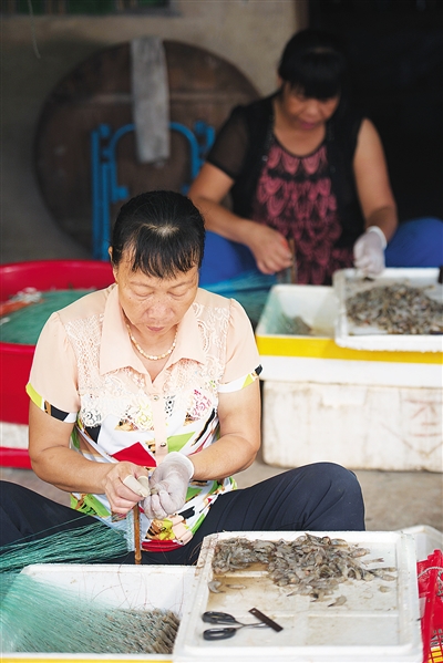 5月24日,潭门港渔民放下休渔期禁止使用的网具,制作钓饵钓鱼。 本栏图片均由特约记者 蒙钟德 摄