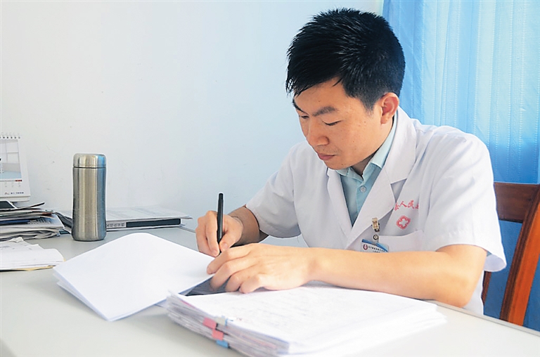 采访时,一个中等个头、身形消瘦,忙得像个陀螺的男人出现在记者眼前。他就是琼中黎族苗族自治县人民医院外科副主任、主治医师张惠明。