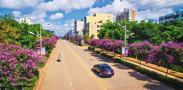 记者从定安县环境保护与城乡综合管理委员会了解到,定安在打造塔岭新区时,对新区的绿化进行了科学合理的规划,主要以耐种养、耐管理的植物为主,其中包含多种开花且花期较长的植物。