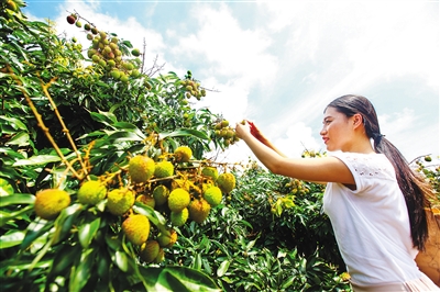 走进海口市琼山区各个荔枝园,就如同走进了流光溢彩、诗意浪漫的水果海洋。各个荔枝园一片生机勃勃,又是一个硕果累累的季节。果农们摘果、分装、打包、装车,一车车满载果实的冷链车也带着果农们丰收的希冀运往各地。