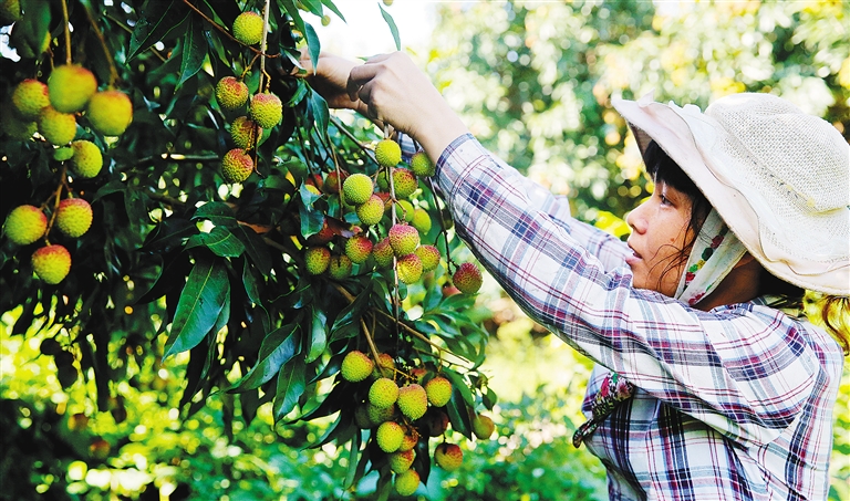 兰洋镇种植户简德厚有300亩荔枝,今年进入丰产期,单株产量超过50斤,虽然还不是很理想,但比多数荔枝园高产,这让简德厚非常高兴,多投入终于有好的回报。不过,由于准备工作不充分,一时找不到熟练的采摘工和足够的包装工,成熟的荔枝不能及时采摘,这让简德厚非常着急。连日来,他到处招工紧急培训,努力把荔枝丰产变成丰收。(周月光 张琳)