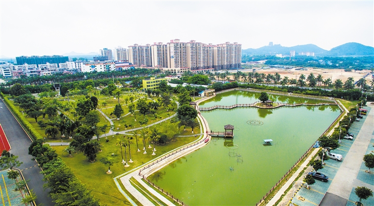 儋州市那大镇城西公园是市民散步、做操的好地方。 本报记者 苏晓杰 特约记者 吴文生 摄