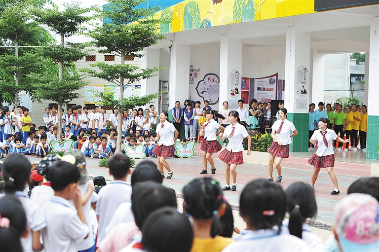 5月26日,在“六一”儿童节来临之际,共青团海口市委在东山镇农场小学启动庆“六一”关爱活动。当天下午,全校800名学生在青年志愿者、心理咨询师、专业社工的引导下开展了航模体验、文艺演出、拓展游戏等活动,度过了美好难忘的时光。据了解,这是“”海口市关爱重点青少年系列活动的品牌项目之一。