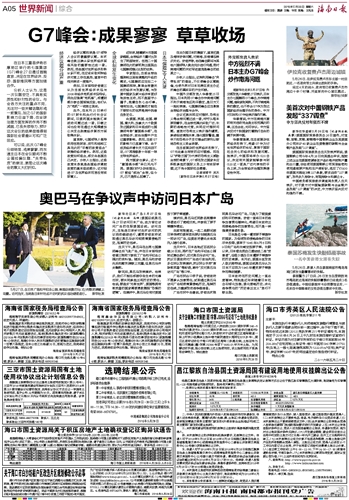 海南日报 世界新闻综合 005 2016-05-281 2016年05月28日 星期六