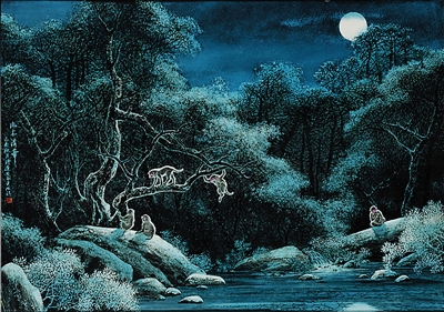 《幽谷夜月》(版画)