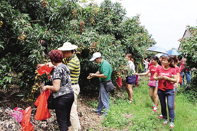 海南的荔枝园很多,但像儋州惠丰果园这样愿意开放的很少。去年,惠丰果园荔枝大幅减产,300亩产量不到5万斤,由于产量小,收购商都不愿意来。儋州一位领导无意中得知后,建议果园通过网络平台吸引市民前来采摘消费。开展现场采摘销售,果然不到半个月时间,5万斤荔枝被市民采摘买走,果园收入30多万元。今年,惠丰果园决定再次开放销售,一方面消费者体验到采摘荔枝的乐趣,另一方面开辟果园增加收入的新渠道。
