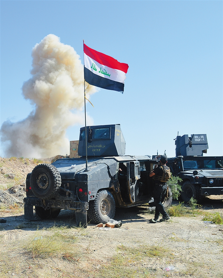 5月31日,在伊拉克费卢杰,伊拉克安全部队的车辆前方升起浓烟。 伊拉克政府军5月31日与盘踞在费卢杰的极端组织“伊斯兰国”武装激烈交火,政府军打退“伊斯兰国”武装长达4个小时的进攻。此前,伊拉克军队已肃清费卢杰周边的极端武装人员,并在30日攻入费卢杰市区。 新华社/路透