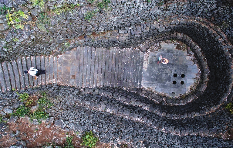 海南日报摄影部航拍海南某地的一口水井,外型形似一个巨大的长汤勺。“汤勺”究竟遗落在哪里?快来猜猜吧!