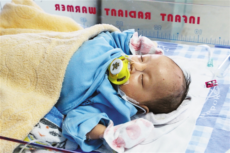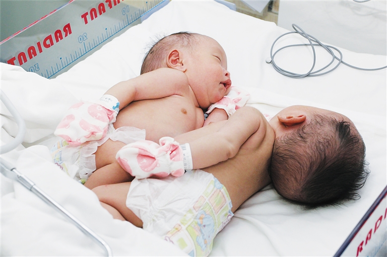 符仁旁和符立菊是来自东方市感城镇民兴村的农民,夫妻俩有一个可爱的儿子。2015年8月份,符立菊再次怀孕,但是,惊喜变成了惊吓,符立菊怀孕33周左右时,被查出怀的是连体胎儿。今年4月21日,符立菊在东方市医院剖腹产下一对连体女婴。