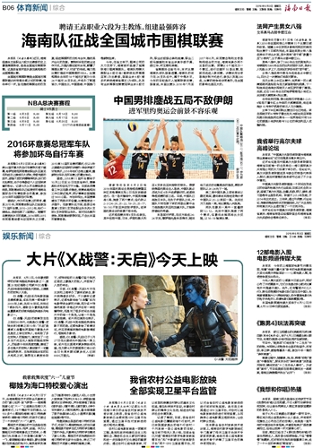 海南日报 体育新闻 娱乐新闻 014 2016-06-031 2016年06月03日 星期五