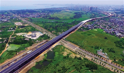 目前,海秀快速路项目钢结构已全部架设完毕,主桥、匝道现浇梁桥施工正紧锣密鼓全速推进,部分路段已经铺设沥青。据介绍,截至5月30日,海秀快速路项目累计完成施工产值约14.3亿元,已实现丘海立交4条匝道通车、龙昆立交Pes匝道及Pne匝道通车。