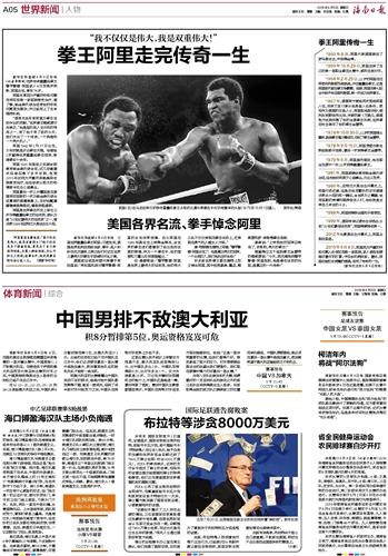 阿里曾经自豪地说:“我不仅仅是伟大,我是双重伟大!”他不仅仅是为了荣誉而战,更是为了自己的信仰而战,为黑人群体而战,为公平和正义而战;在拳台外,他还是著名的社会公益人士。(据新华社电)
