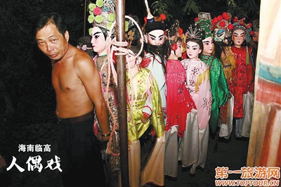 木偶戏之于临高人,那是一场不可或缺的盛会。据清康熙(1662—1722)年间修撰的《临高县志》记载:“临俗多信奉神道,不信医药,每于节例,端木塑于肩膊,男女巫唱答为戏,观者甚众,曰驱魔妖,习以为常。”《海南省志》对临高人偶戏的盛行也有记载:“清康熙年间,土戏班最盛行,浸淫全岛,妇孺老少,几无不识唱土戏。”
