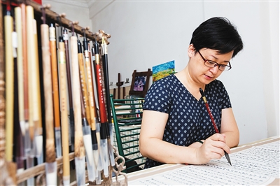 同龄的妇女大多每天操心家务事、看电视剧、聊家常,但张筑却整天沉浸在笔墨纸砚中,并且乐此不疲。“我感觉以前走了很多弯路,一直没有找到自己的方向,因此浪费了十几年的时光,所以现在要抓紧时间补上。”