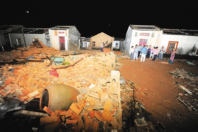 是夜,被风吹过的村庄一片漆黑,救援人员已在村中支起了救灾帐篷,受灾群众已转移到附近安置。