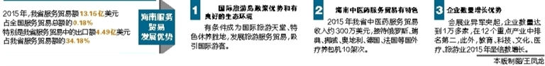目前,海南服务贸易基础极其薄弱,发展水平与兄弟省份、全国平均水平还有一定差距。邢厚媛认为,海南发展服务贸易有许多优势,发展潜力较大。“比如,海南拥有国际旅游岛政策优势和有良好的生态环境,有条件成为国际旅游天堂、特色休养胜地,可以发展旅游服务贸易,吸引国际游客。”