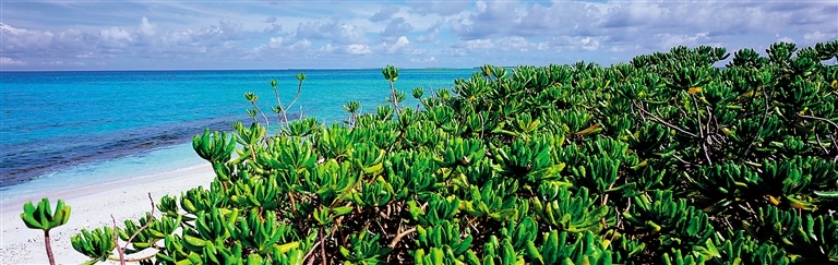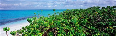 草海桐是三沙特有植被,属于海岸固砂防潮树种,它们在西沙各个岛礁上一片片地生长,随着海风摇曳生姿。